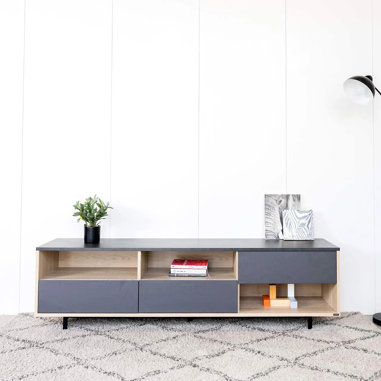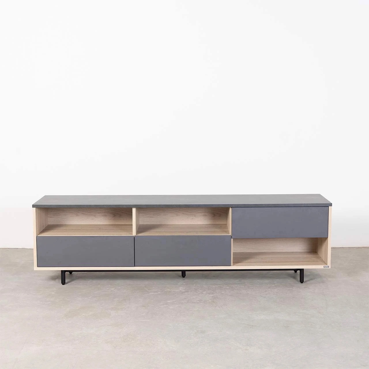 Mặt trên của tủ kệ tivi được làm từ gỗ PB phủ Melamin hiệu ứng giả vân tường xi măng sống động như tường thật, đem lại cảm giác sang trọng cho phòng khách của bạn.